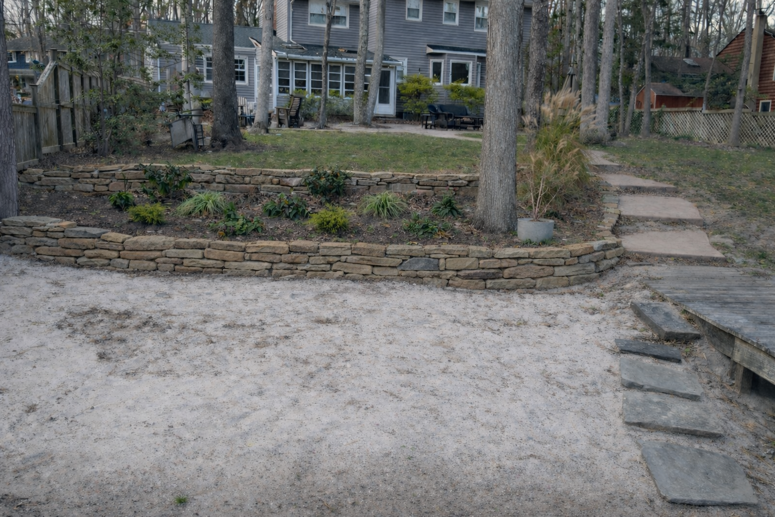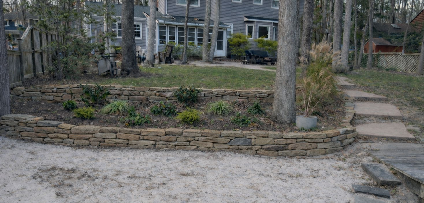 • Retaining walls (block or natural stone)